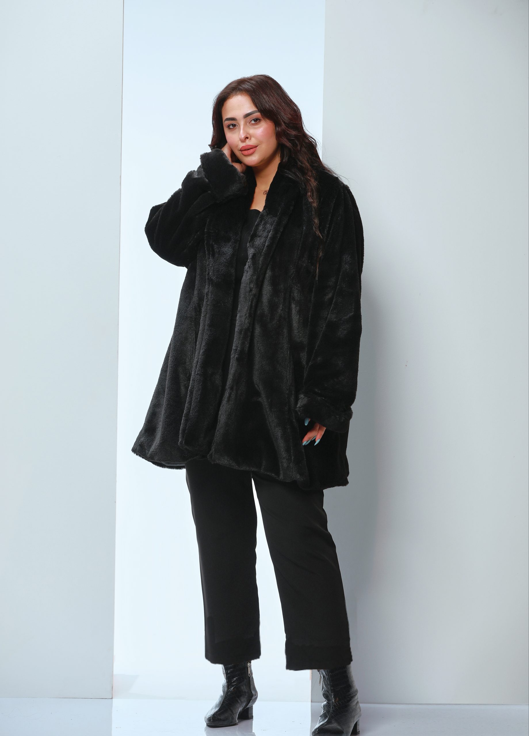 This jacket is crafted from soft, premium fur with wide cuts at the bottom, giving it smooth, graceful curves. The chic shawl collar adds a timeless touch of sophistication and class.