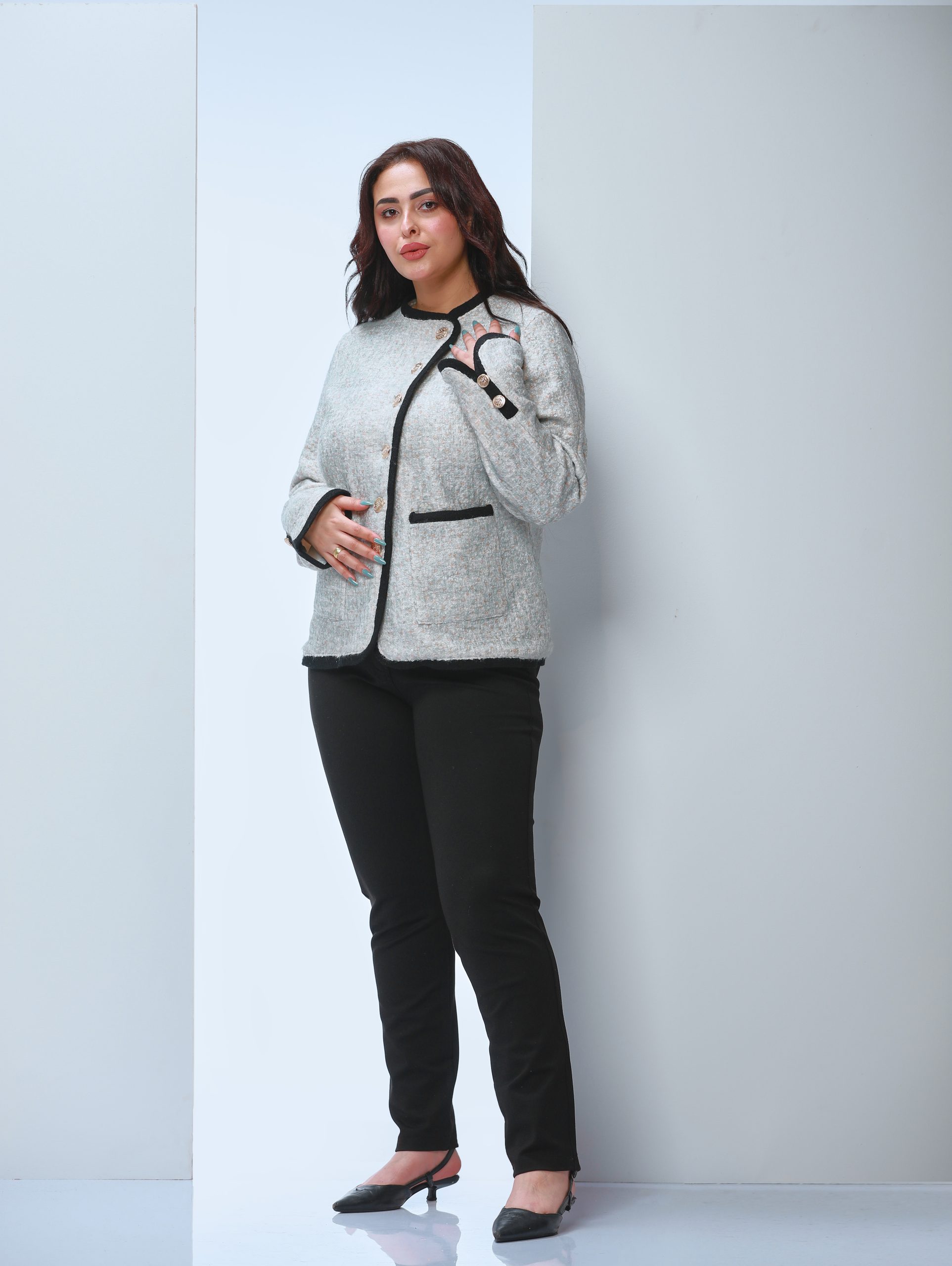 Elevate your style with this elegant wool jacket that blends luxury and simplicity. Crafted from soft wool in a sophisticated color, featuring chic buttons and clean edges for a classic touch. Perfect for casual looks or special occasions. Shine with confidence!
